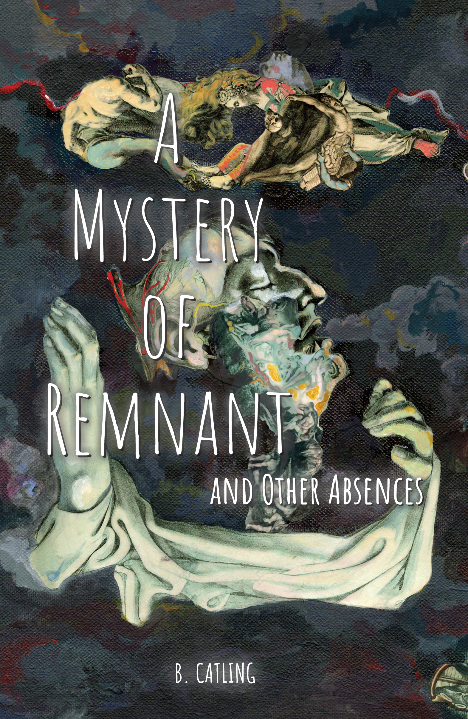 A Mystery of Remnant and Other Absences by B. Catling; cover art (“A Mystery of Remnant”) by Eleanor Crook; cover production by Meggan Kehrli; foreword by Jack Catling; introduction by Victor Rees; afterword by Iain Sinclair; edited by Brian J. Showers and Timothy J. Jarvis; copyedited by Jim Rockhill; typeset by Steve J. Shaw; published by Swan River Press at Æon House.