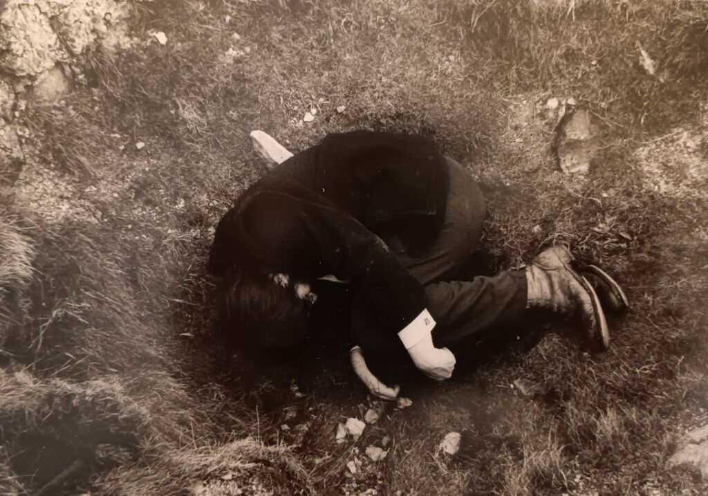 VR: That notion of a Catling cosmology is a very good way of putting it. Something that’s so striking about his work, having studied its progression from the early ’60s to the 2020s, is how incredibly early in his career he latched onto what would become his key artistic motifs. His practice moved from sculpture to poetry, then to performance, painting, film-making, and finally to the writing of novels—but even though the mediums changed, the key obsessions remained the same: ghosts, weapons, angels, cyclopses, eyes, dysfluency, deformity, orphans, Ripperology . . .