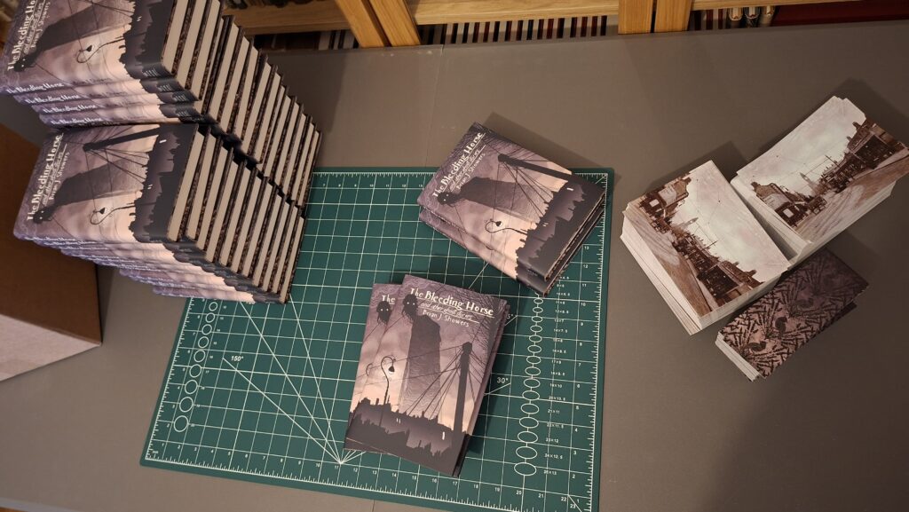 The Bleeding Horse and Other Ghost Stories by Brian J. Showers; cover art by Brian Coldrick; cover design by Meggan Kehrli; foreword by John Connolly; introduction by Jim Rockhill; copyedited by Jim Rockhill; typeset by Steve J. Shaw; published by Swan River Press.